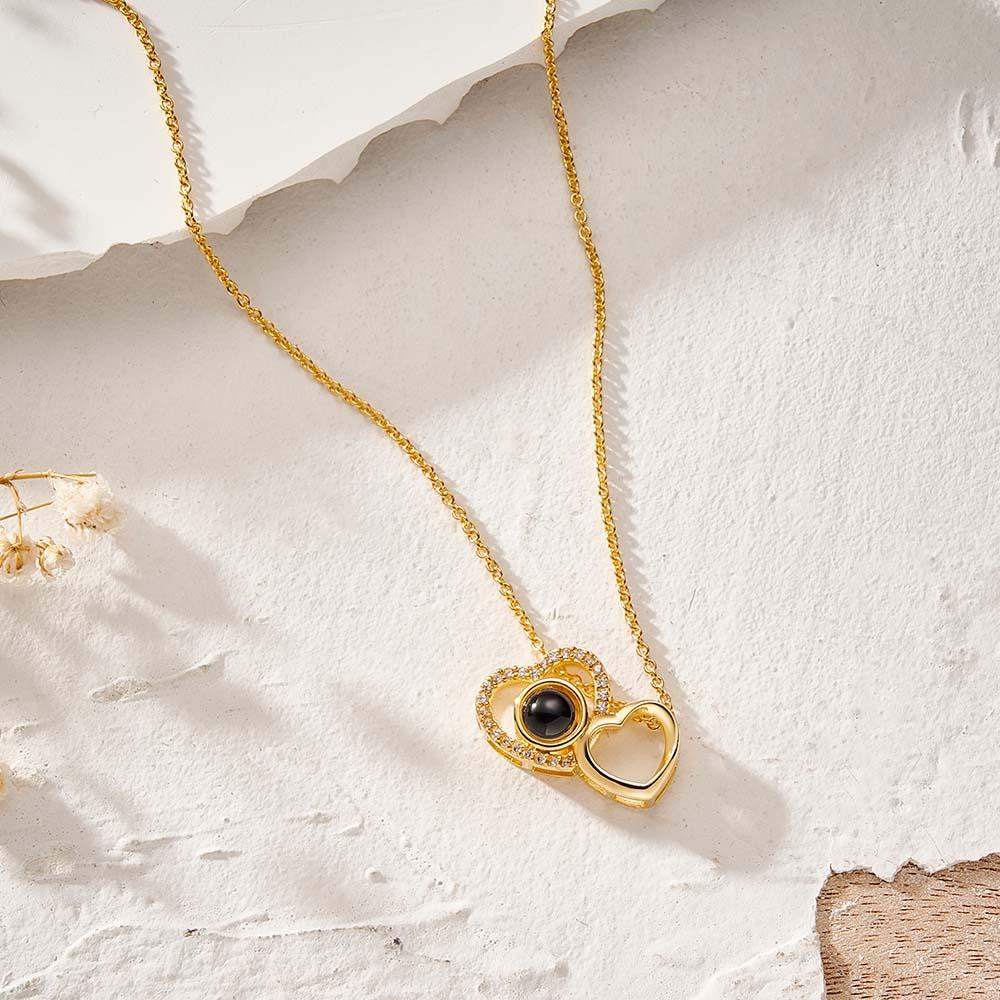 Custom Double Heart Photo Projection Necklace Personalized Picture Inside Pendant Memorial Jewelry