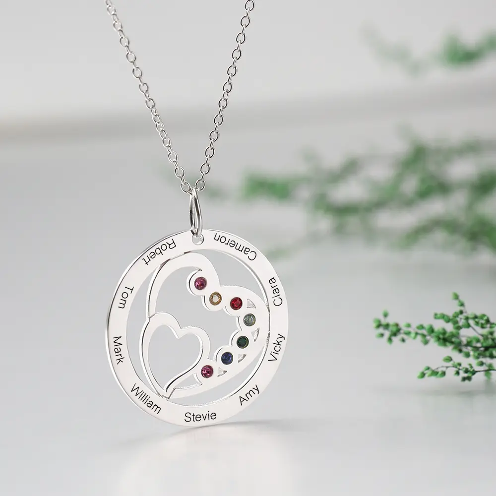 - Heart shaped design, with 1-7 birthstone, personalized multiple names